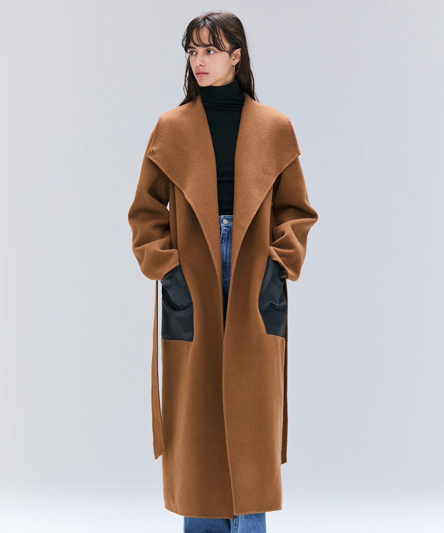 BEIGE,(ベイジ)/LEMOORE / ウールリバーフェイクレザーポケット付きコート