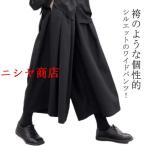 袴パンツ メンズ ワイドパンツ ハカマパンツ 9分丈 スカート風 スカーチョ モード系 フレアパンツ サルエルパンツ ビッグシルエット 無地 大きめ