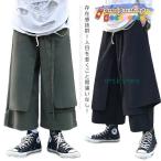 袴パンツ メンズ ワイドパンツ サルエルパンツ 無地 ボトムス アシンメトリー 体型カバー 大きいサイズ ビッグシルエット ゆったり おしゃれ カジュアル 秋 冬