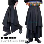 袴パンツ メンズ ワイドパンツ サルエルパンツ 無地 ボトムス アシンメトリー 体型カバー 大きいサイズ ビッグシルエット