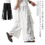 袴パンツ ワイドパンツ メンズ フレアパンツ ロング丈 ガウチョ スカートパンツ スカート風 ロングパンツ ワイド 薄手 春 夏 はかまパンツ 冷感
