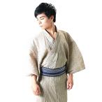 浴衣 メンズ 浴衣2点セット ベージュ破れ細格子浴衣×濃紺色献上柄角帯 男性浴衣 メンズ