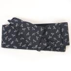正絹博多織角帯「紺色の地にグレー色の鳥獣戯画の模様」
