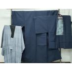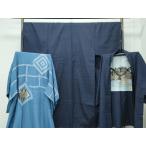 中古 男性用 着物 アンサンブル 羽織 長襦袢 着物 しつけ糸付き ウール 亀甲柄 単衣仕立て 3点セット 身丈140cm 裄丈69cm 青・紺