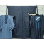 平和屋着物●男性 紬 アンサンブル 長襦袢(袷)セット 鉄納戸色 三越扱い 正絹 逸品 AABF9672ck