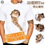 可愛い 3D 猫 Tシャツ 半袖 男女兼用 メンズ 薄手 ねこ 白 レディース 面白 おもしろ かわいい トリックアート 代引不可