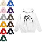 プルオーバーパーカー メンズ レディース スウェット フード トレーナー パイル 薄手 ロゴ ネタ かわいい ネコ 猫 白黒 おしゃれ オリジナル ブランド イラスト
