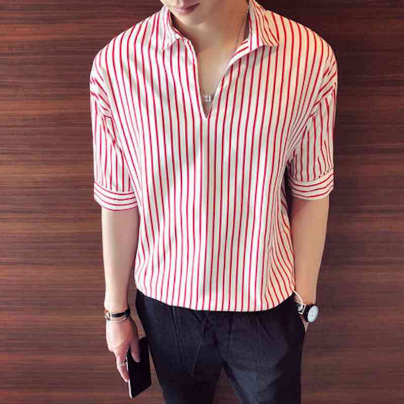 【\クーポン利用で20%OFF!/】 シャツ メンズ レトロストライプシャツ 大きいサイズ ノーカラー 春 派手 襟付き 薄手 オフィス おもしろ 肌着 夏 コーデ Tシャツ インナー フランネル 涼しい ゴルフ カジュアル ネルシャツ 半袖 おしゃれ 七分袖 ビジネス