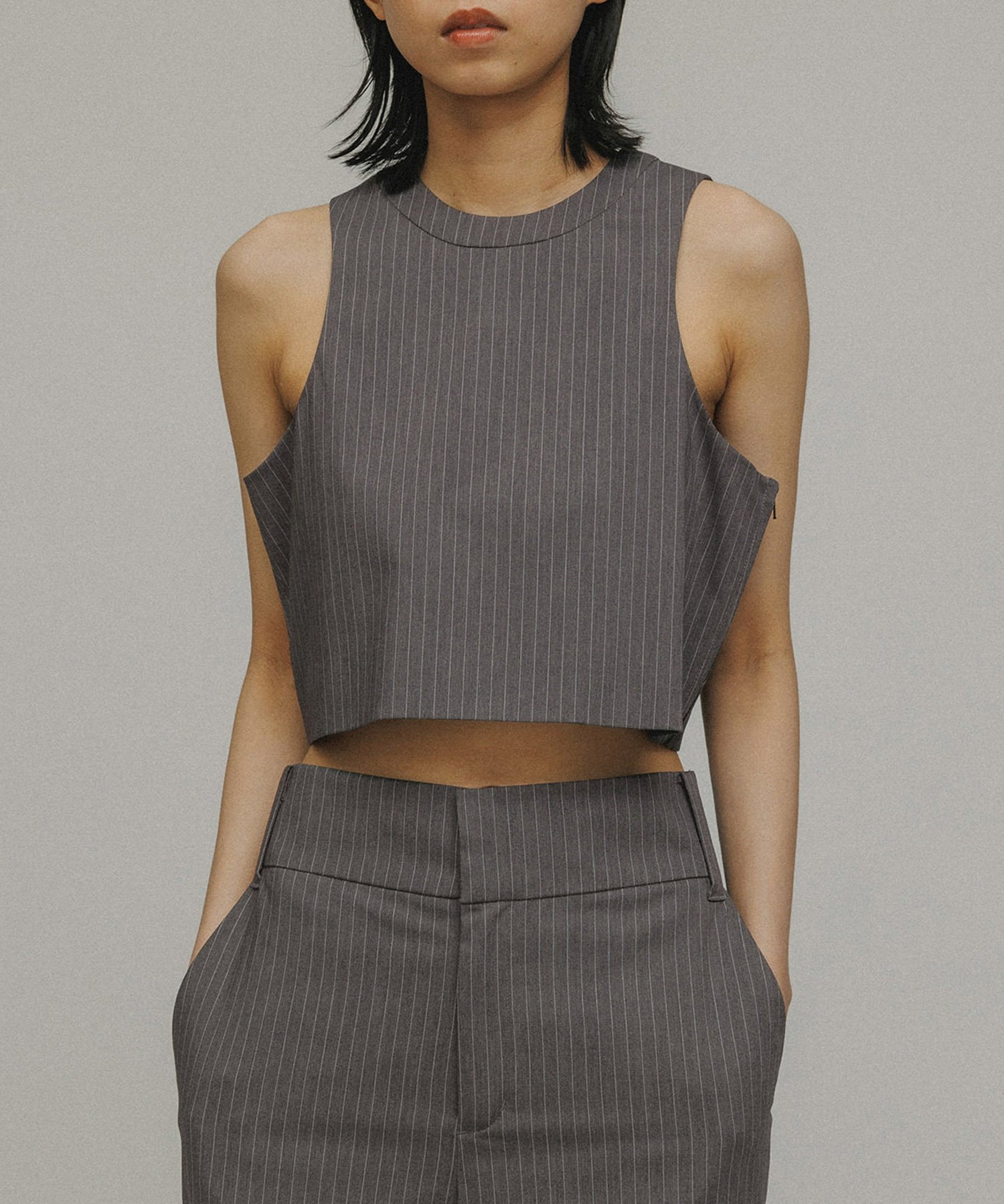 【SALE/80%OFF】M TO R [BLOUSE]PINSTRIPE AMERICANSLEEVE TOPS アダムエロペ トップス シャツ・ブラウス グレー ネイビー