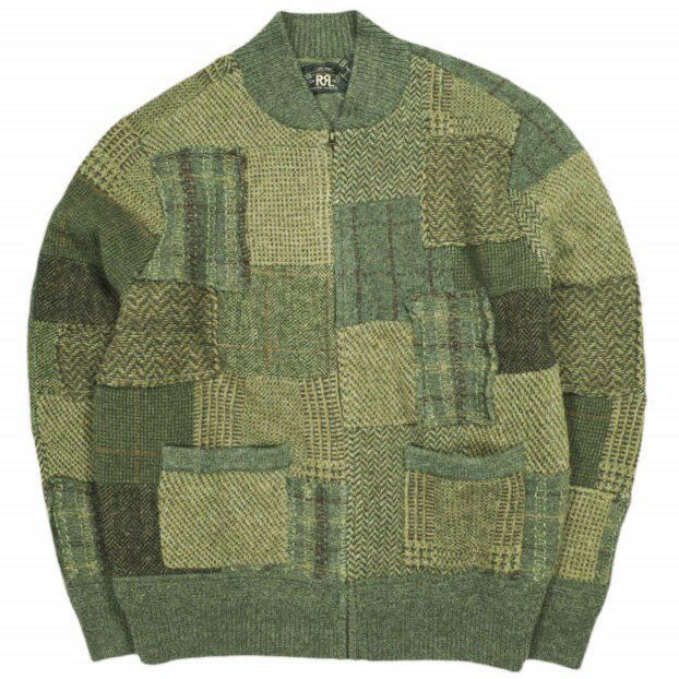 RRL ダブルアールエル 25AW パッチワークウールカシミヤセータージャケット MNRRSWE16820193 S 310 グリーン セーター Double RL ニット 定価326,700円 トップス【新古品】【中古】【RRL】