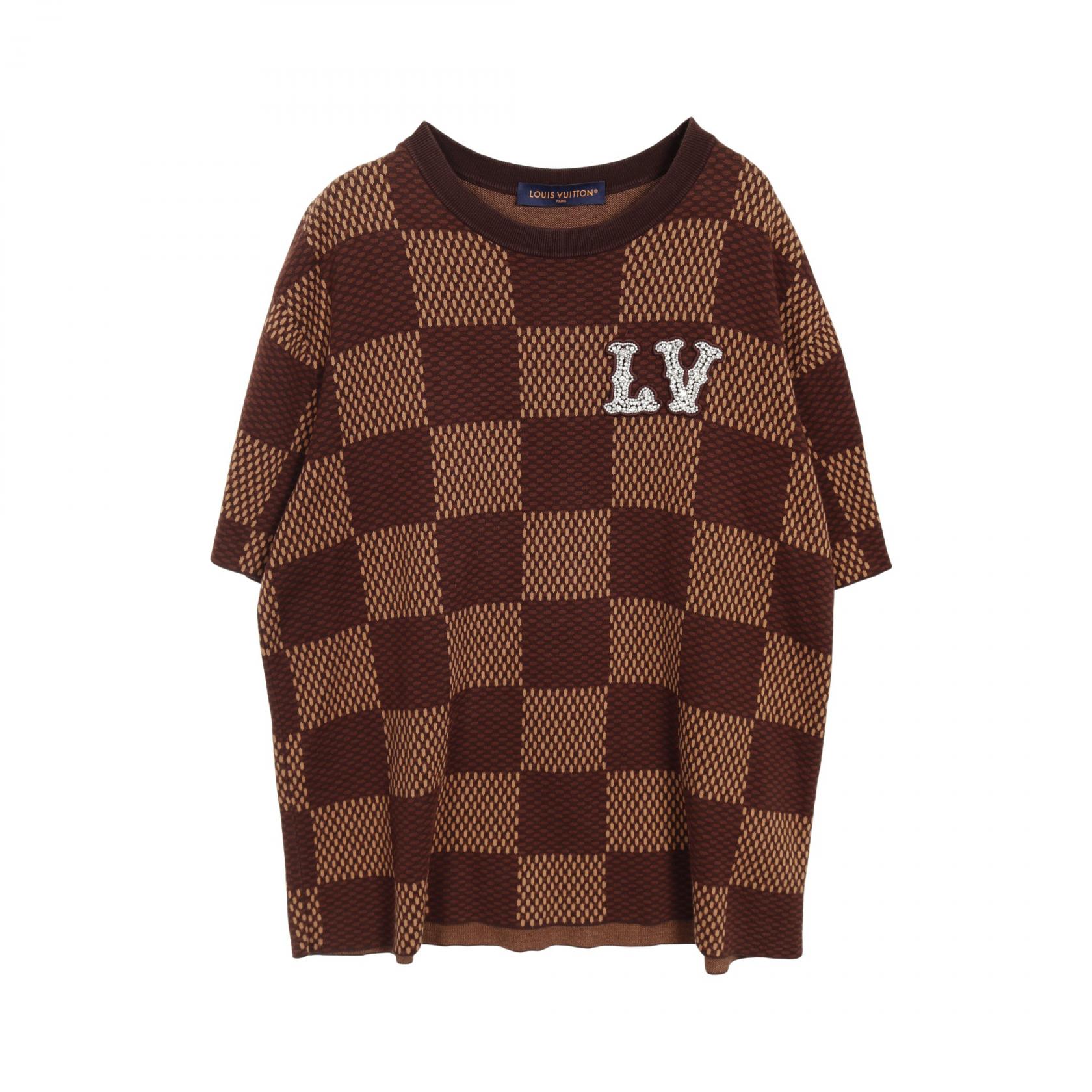 ◆まとめ買い|20%OFF対象◆ルイ・ヴィトン LOUIS VUITTON ショートスリーブコットンダミエクルーネックウィズストラスLVパッチ カットソー 衣料品 トップス コットン メンズ ブラウン系 RM241 AUR HQN63W 【中古】