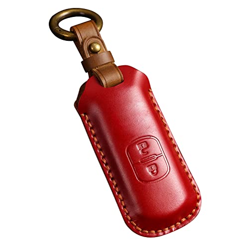 [YANMW] 適合マツダ キーケース スマートキーケースキーホルダー革キーカバーフマツダCX5 CX4 CX3 CX7 CX8 CX9 RX8 アクセラ アテンザ demio アドバンストキー保護ケース本革(2 ボタン, 赤)