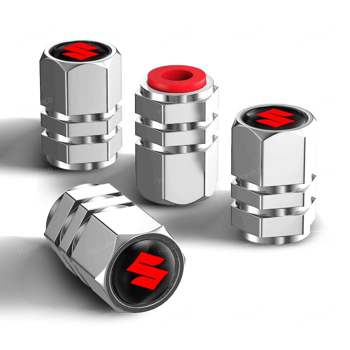 スズキ エアバルブキャップ 4個セット スズキ ジムニー ハスラー ワゴンR エブリイ スペーシアカスタム エブリイワゴン ラパン ソリオ スペーシア アルトなどに適用 タイヤバルブキャップ アルミ製 自動車 ドレスアップパーツ 高強度 軽量 腐食防止 (スズキ, 銀)