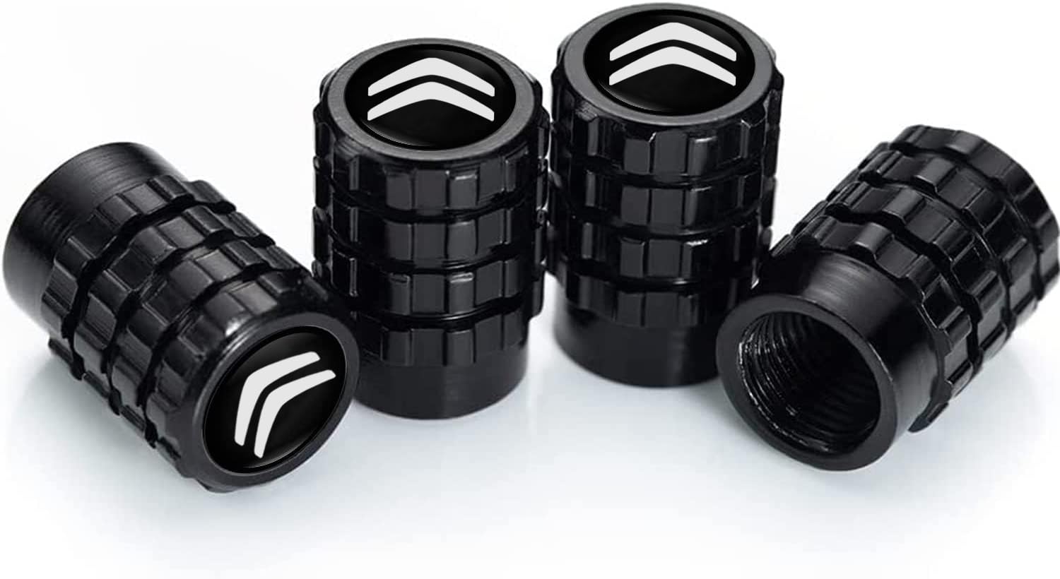 エアバルブキャップ シトロエン 車 バイク アルミ合金 軽量 腐食防止 ホイールドレスアップ 4個セット (シトロエン,ブラック)