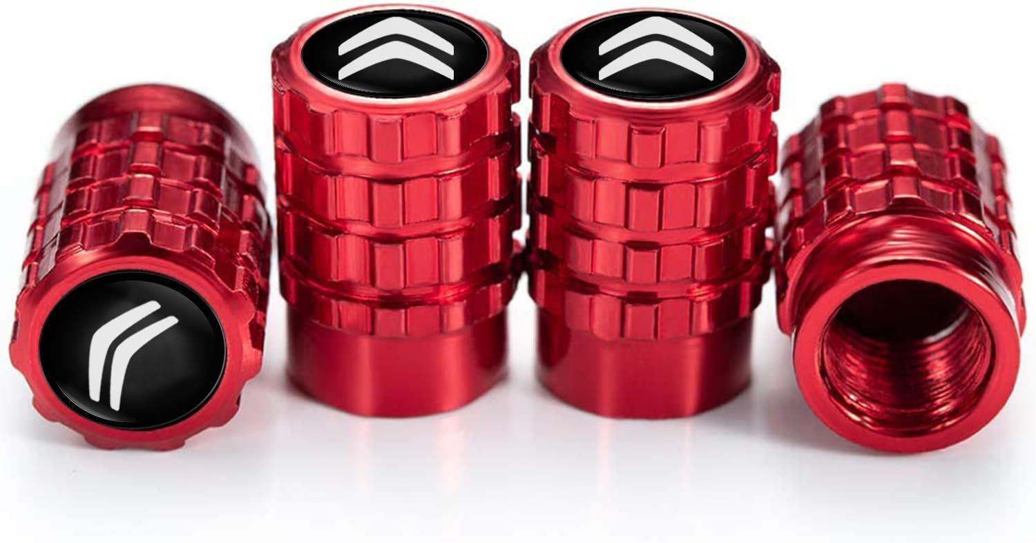 エアバルブキャップ シトロエン 車 バイク アルミ合金 軽量 腐食防止 ホイールドレスアップ 4個セット (シトロエン,レッド)