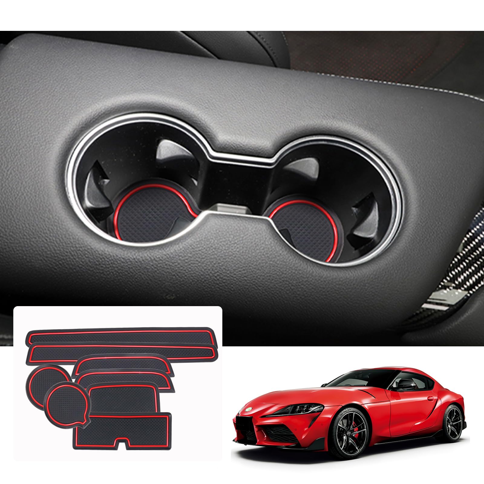 【送料無料】【GAFAT】TOYOTA スープラ トヨタ DB型 5代目 2019+ GR Supra 新型 専用 ドアポケットマット ラバーマット ゴム 防音 ドリンクホルダー ドレスアップ インテリアラバーマット 汚れ防止 右ハンドル専用 傷防止 滑り止め (レッド)