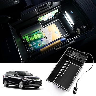 トヨタ ハリアー 80系 内蔵型コンソールボックス USB充電付き2ポート LEDセンサーライト Harrier MXUA8# AXUH8# R2.06~現行 車内収納ボックス コンソールトレイ 小物入れ 車種専用 装着簡単 (ハリアー 80系, 多