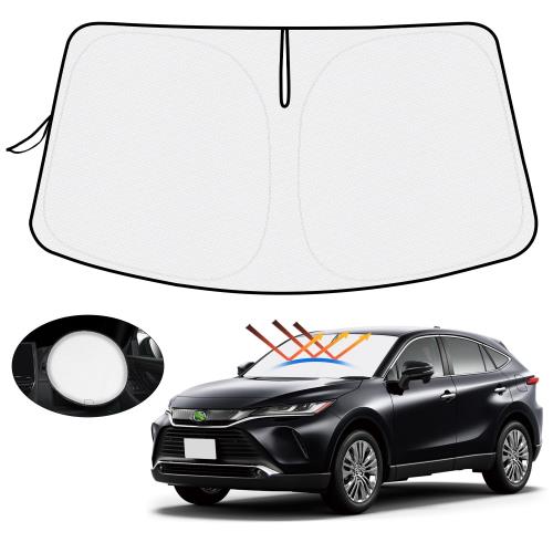 ハンドル日よけカバー付きMozan トヨタ ハリアー 80系 サンシェード フロントガラス用 HARRIER 80 4代目 R2.6-現行 車用サンシェード UVカット 日よけ 日差しカット 遮光 断熱 折り畳み式 ハンドルサンシェード 収納袋付き ハニカム設計 インテリア 取付簡単 暑さ対策 内装パ