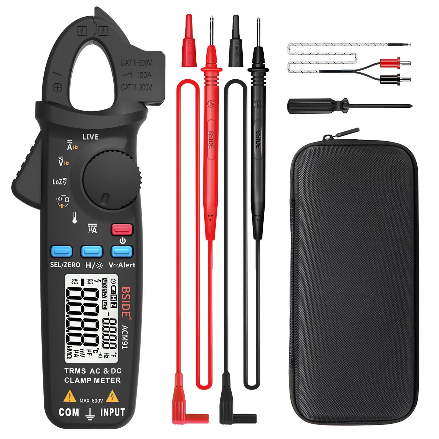 【送料無料】BSIDE 直流電流クランプメーター1mAの解像度真の実効値自動レンジング6000カウントテスター電圧電流抵抗周波数温度キャパシタンスメーターとバッククリップ