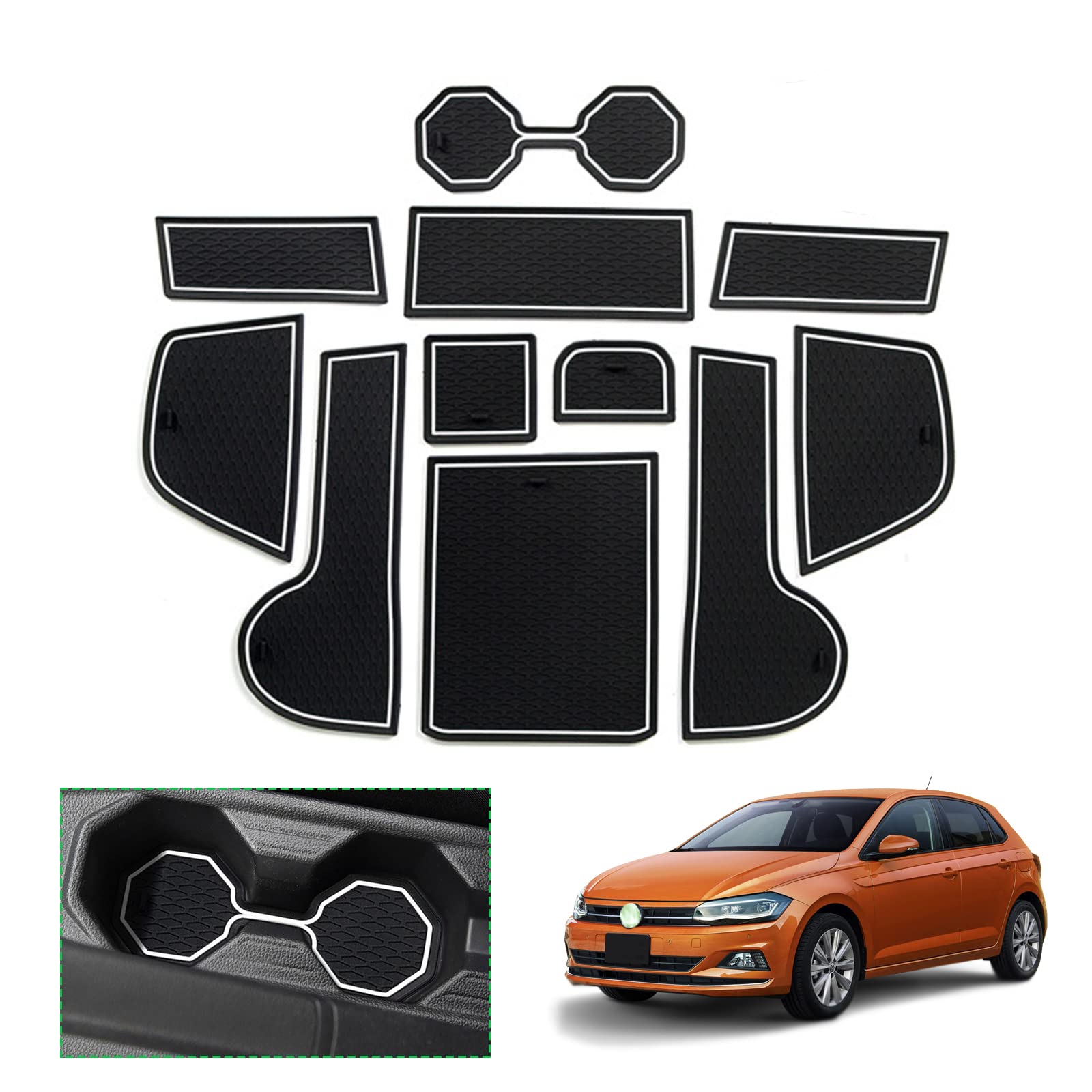 GAFATフォルクスワーゲン Polo ポロ MK6 6代目 WV 2018+ 新型 専用 ドアポケットマット ラバーマット ゴム 防音 ドリンクホルダー ドレスアップ インテリアラバーマット 汚れ防止 右ハンドル専用 傷防止 滑り止め (ホワイト)
