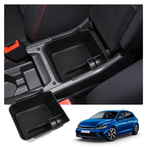 RUIYAフォルクスワーゲン ポロ MK6 AW型 コンソールボックス 小物入れトレイ ポロ aw コンソールトレイ 車種専用 ポロ 6 センターコンソール収納ボックス 車内収納ボックス カーアクセサリー 内装パーツ アームレストボックス ラバーマット付き