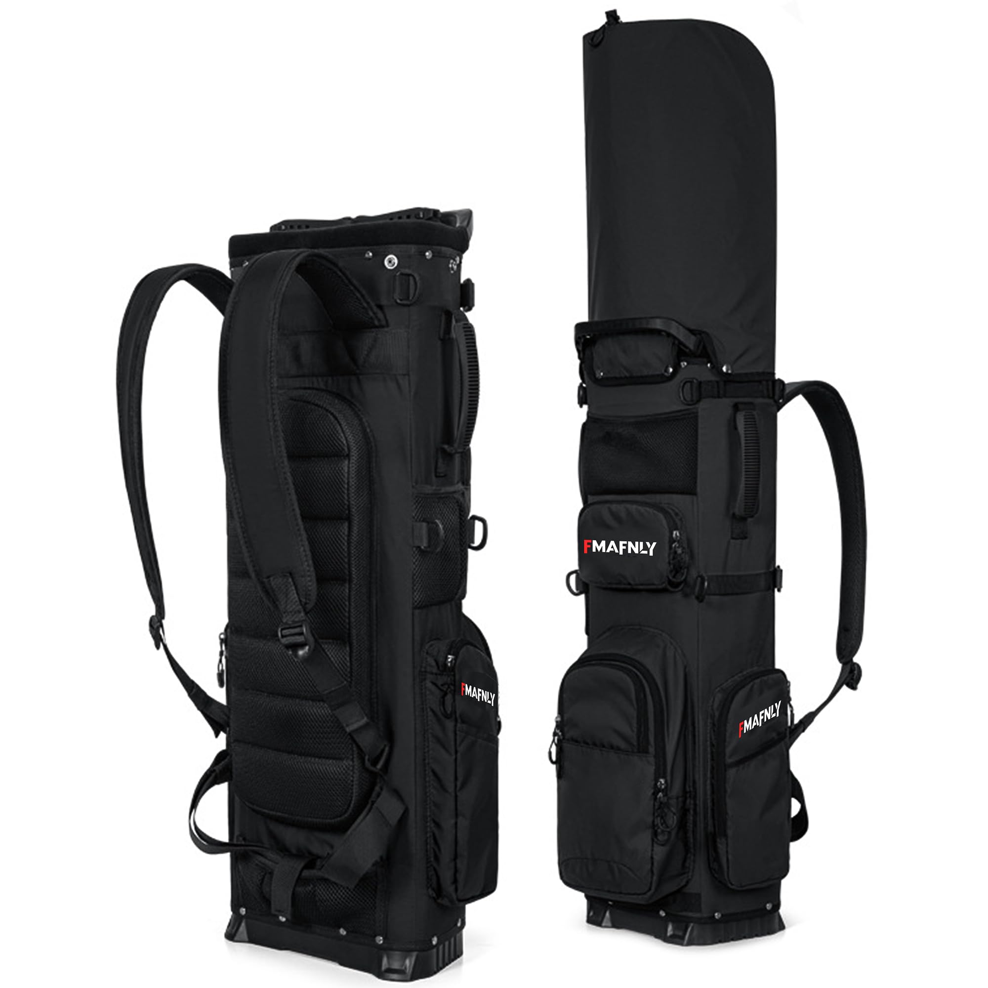 【送料無料】FMAFNLY ゴルフキャディバッグ セルフスタンド 7分割/14本収納 リュックサック背負う クラブ固定 約2kg フードあり ゴルフバッグ スタンド 軽量 防水 ゴルフクラブ破損防止 練習用 メンズ レディース 色:ブラック
