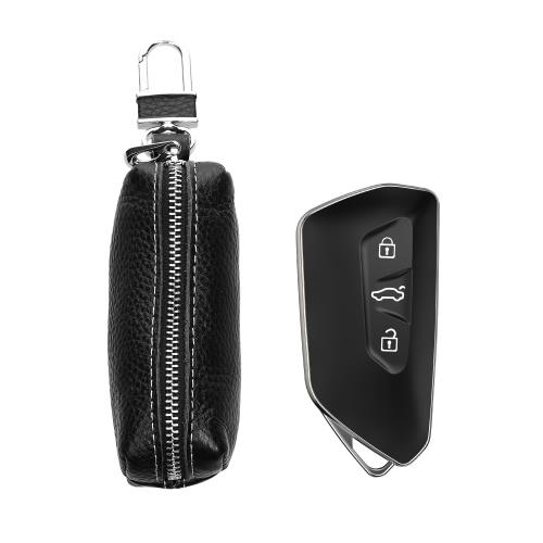 kwmobile キーカバー VW ゴルフ8 ID.03 / ID.04 / アウディ 3ボタン / ランチア 3ボタン対応 キーケース - スマートキー キーポーチ 鍵ケース レザー 黒色