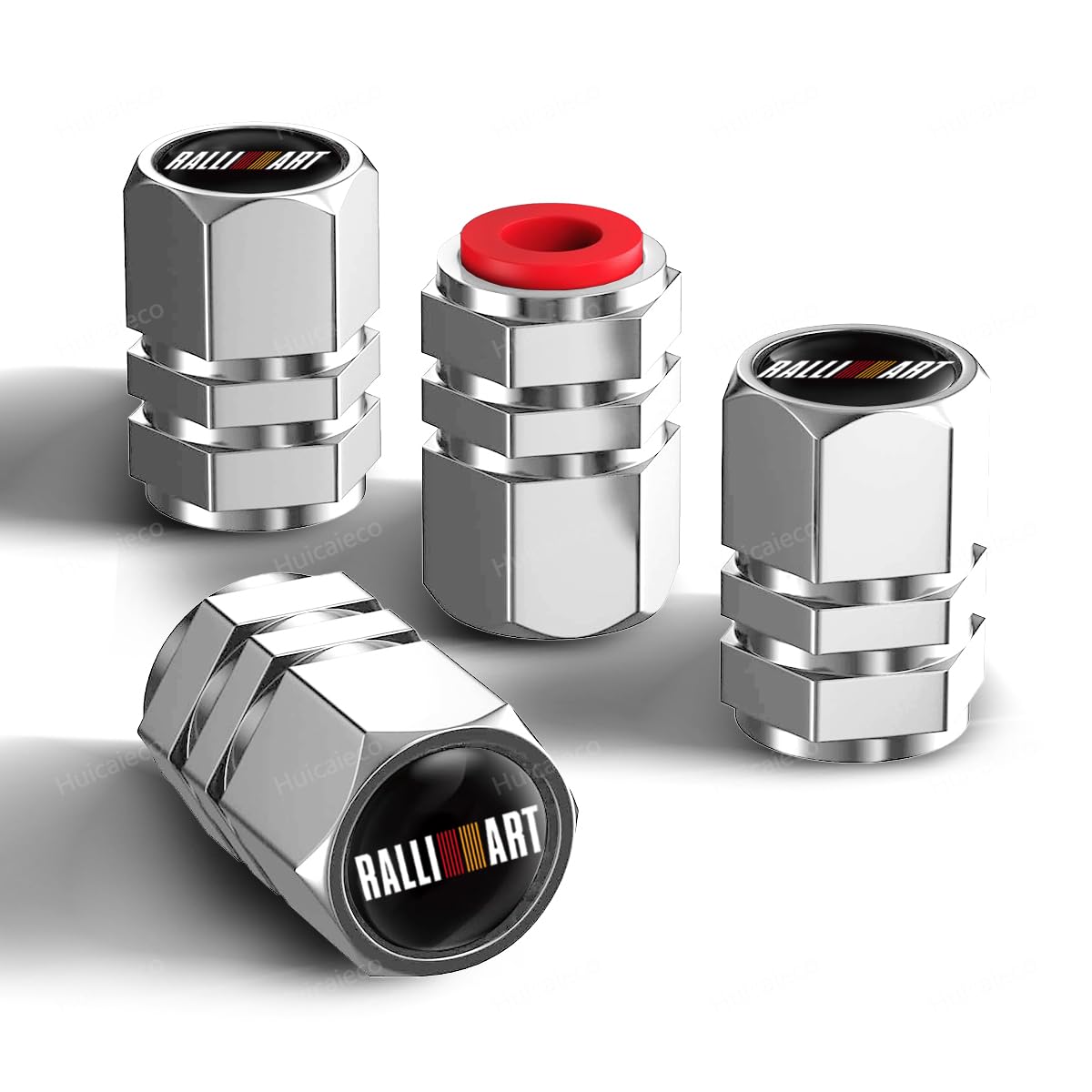 RALLI ART エアバルブキャップ 4個セット 三菱 デリカD:5 アウトランダーPHEV キャンター パジェロミニ eKワゴン デリカミニ パジェロ アイ ランサーエボリューション エクリプス クロス PHEVなどに適用 タイヤバルブキャップ アルミ製 自動車 ドレスアップパーツ 高強度
