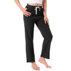 cheibear Womens Lounge Pants Cotton Long Straight Elastic Waist Drawstring
