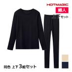同色 上下3組セット HOTMAGIC HOTリブ 長袖Tシャツ&レギンス 上下セット レディース グンゼ GUNZE