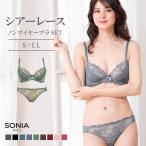 シアーレース ノンワイヤー ブラジャー&ショーツセット (S・M・L・LL) ソニアブラック 女性 下着 レディース レース 透け感 透明感 エレーヌ elene 爆買