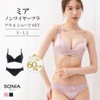 S-LL ノンワイヤーブラ & ショーツセット ミア ソニアブラック ノンワイヤー 盛れる 上下セット 小さいサイズ 女性 下着 レディース エレーヌ elene 爆買