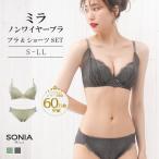 ミラ(S-LL) ノンワイヤーブラ & ショーツセット ソニアブラック ノンワイヤー レース 盛れる 上下セット 女性 下着 レディース エレーヌ elene 爆買