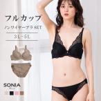 シアーレース ノンワイヤー ブラジャー&ショーツセット (3L・4L・5L) ソニアブラック 女性 下着 レディース レース 透け感 透明感 エレーヌ 爆買