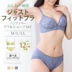 ジャストフィットブラ ノンワイヤーブラジャー ショーツ セット ビューティアシスト 上下セット ブラセット ショーツセット 脇高 痛くない M L LL ブラ&ショーツ レース 花柄 ランジェリー ぶらじゃー 下着 かわいい 楽ちん エレーヌ