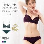 セレーナ (S-LL) ノンワイヤーブラ & ショーツセット ソニアブラック ノンワイヤー レース 盛れる 上下セット 女性 下着 レディース エレーヌ elene 爆買