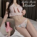 Tバックショーツ ヒップハンガー レディース 花柄レース シースルー 勝負下着 セクシーランジェリー 紐パン ローライズ リボン