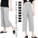 マタニティ 七分丈 ルームパンツ ストライプ柄 ステテコ ワイドパンツ ロングパンツ ストレッチ 薄手 通気性 ルームウェア ボトムス リラックスウェ