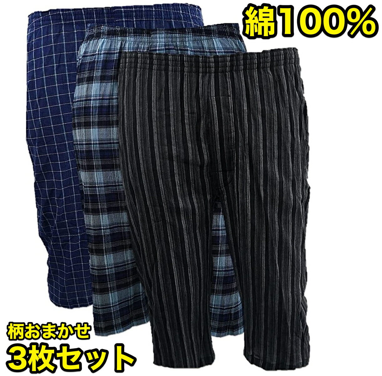 【ポケット付き ステテコ】ステテコ メンズ 3枚セット 綿100 福袋 セット 下着 7分丈 前あき ポケット