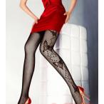 送料無料 セクシー ストッキング ブラック バラ 柄 網タイツ 網目 美脚 効果 スリム レイヤード バレンタイン 冬 温感