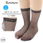 日本製 ひざ下ストッキング 5足組 ラッセル レース付き クルーソックス ブラック 靴下型 靴下タイプ レッグウェア 網ソックス 網靴下 膝下 ヒザ下 網 靴下