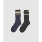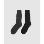 靴下 ソックス 2足セット メンズ クルー丈 足底パイル 保温 クッション性 リブ ライン インナー 下着 肌着