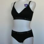 【L】 Champion チャンピオン 黒 スポブラセット スポーツブラジャー+ショーツ 0592 吸汗速乾 カシュクール カップ付 ブラック