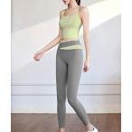 レギンス スパッツ レディース パッド付きヨガトップス+バイカラーレギンスセットアップ 上下2点セット レディース