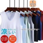 タンクトップ メンズ インナー ランニング 冷感ノースリーブ Vネック 夏 無地 涼しい インナー 下着 肌触り スポーツウェア 冷感素材