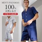 シルク パジャマ メンズ 上下セット シルク100% 19匁 保湿 半袖 ズボン セット ルームウェア 寝間着 春夏 シルクウェア ナイトウェア 部屋着
