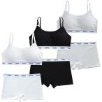 ガールズブラ スポーツブラ 上下セット ジュニア ブラジャー ショーツ カップ付 3色組( ボクサーグレー白黒, Free Size)