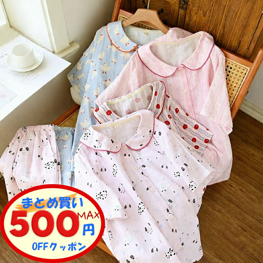 【最大500円OFFクーポンあり】 パジャマ セット 2点セット 上下セット 半袖シャツ ハーフパンツ 可愛い 女性用 女の子用 レディースパジャマ ジュニア ピンク ブルー ガーゼ ルームウェア ナイトウェア ルーム着 部屋着 薄手 薄め カジュアル ダブルガーゼ 2重ガーゼ