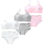 【閉店在庫限り最大20%OFFクーポン!】 ガールズ ブラ ショーツ 上下セット 3色組 カップ付き 女の子 ハーフトップブラ ジュニア 肩ひも調整 キッズ 下着上下セット レディース 女児ショーツ スポブラセット 子供スポーツブラ 小学生ブラ 女の子下着 スポブラ パンツ