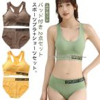 ブラショーツセット ノンワイヤー ブラジャー ショーツ セット 上下セット 下着 スポーツブラ パッド付き フルカップ リブ 綿 脇高